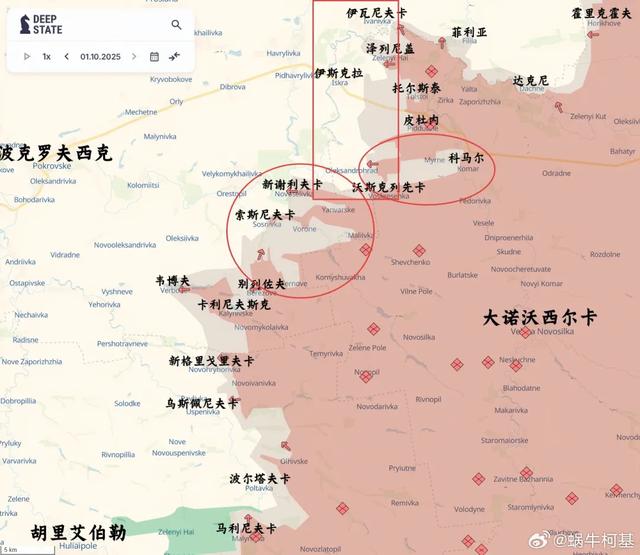 除戰(zhàn)線中央進(jìn)展明顯,戰(zhàn)線南北兩翼也各有推進(jìn),如戰(zhàn)線南翼已前推至古列波利僅有八千米遠(yuǎn)的小村莊韋謝列。在中部戰(zhàn)線、南部戰(zhàn)線逼近古列波利近接近地的同時(shí),東部集群負(fù)責(zé)的戰(zhàn)線北翼開(kāi)始啟動(dòng),先后奪取了韋爾伯韋、新奧列克桑德里夫卡、海村等要點(diǎn)。烏軍甚至一度傳言,俄軍的偵察與破壞小組開(kāi)始在波克羅夫西克城內(nèi)活動(dòng)。