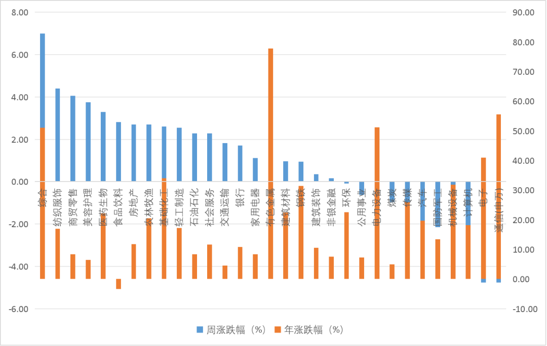 分行業來看,本周綜合、紡織服飾、商貿零售、美容護理、醫藥生物等行業領漲,通信、電子、計算機等行業領跌,可以看到,領漲的行業年內漲幅相對落后,而領跌的行業的年對漲幅靠前,高低切明顯,而實際上這一風格切換從10月份就已經開始了。