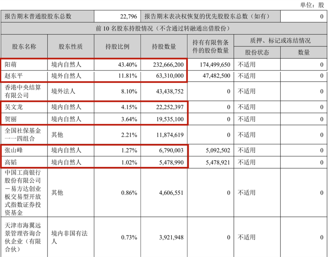 截至2025年三季度末,陽萌持股43.40%,為公司控股股東。