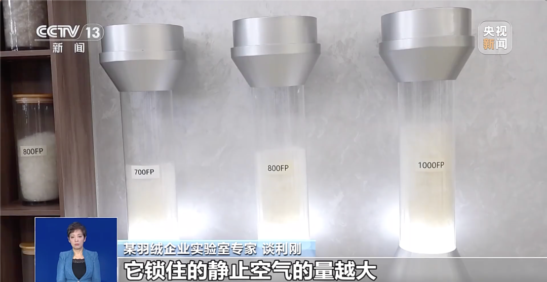 此外,消費者買羽絨服普遍還關(guān)注“蓬松度”,如700蓬、800蓬,這指的是30克羽絨在標(biāo)準(zhǔn)壓力下的體積。700蓬是指30克的羽絨在一定的壓力下,體積為700立方英寸,800蓬就是800立方英寸。蓬松度越高,羽絨鎖住的靜止空氣的量越大,衣服的保暖性能也就相對越好。