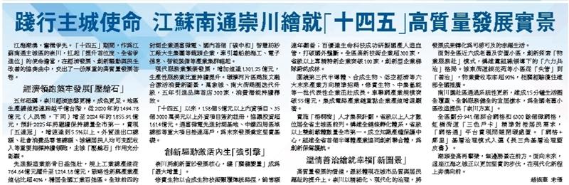 踐行主城使命 江蘇南通崇川繪就「十四五」高質量發展實景