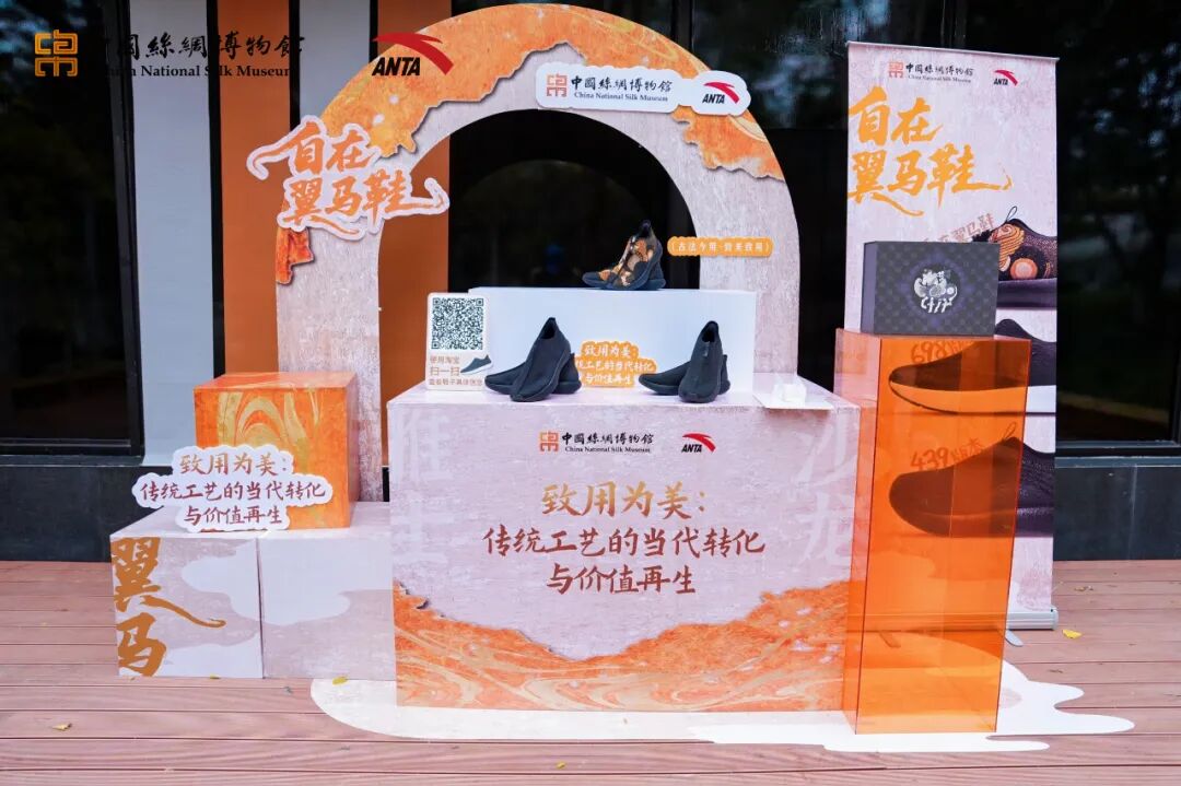 “雅士沙龍”也是中國絲綢博物館攜手安踏集團發起“致敬二十四雅士,弘揚中華文化”活動的重要組成部分之一,二者共同開發的聯名款文創“自在翼馬鞋”當天也亮相展示區,吸引眾多觀眾駐足觀看。