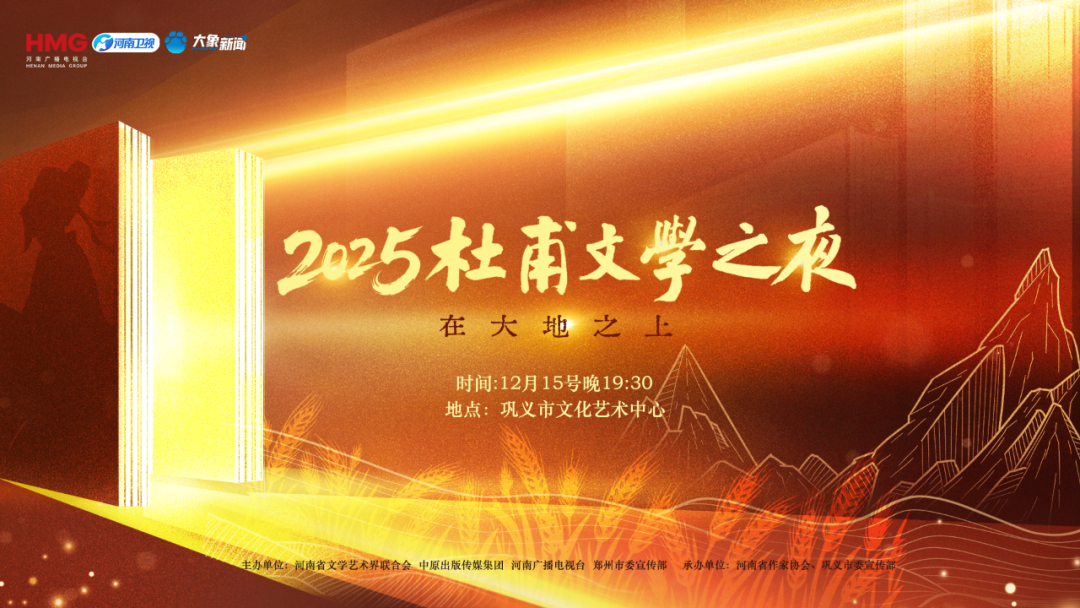 12月15日晚19時30分,以“在大地之上”為主題的2025杜甫文學之夜在唐代詩圣杜甫故里——河南省鞏義市華彩啟幕。在這場匯聚全國文學目光的盛典上,備受矚目的杜甫文學獎各項獲獎名單正式揭曉。