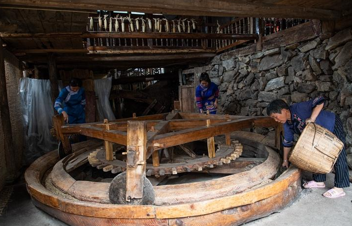 炒好的籽料倒入石碾槽里,那頭沾了油香的老牛,便拉著石碾子,一圈一圈地轉。碾槽咕嚕嚕地響,聲音古老而催眠,直到那些籽料成了油潤的粉末。