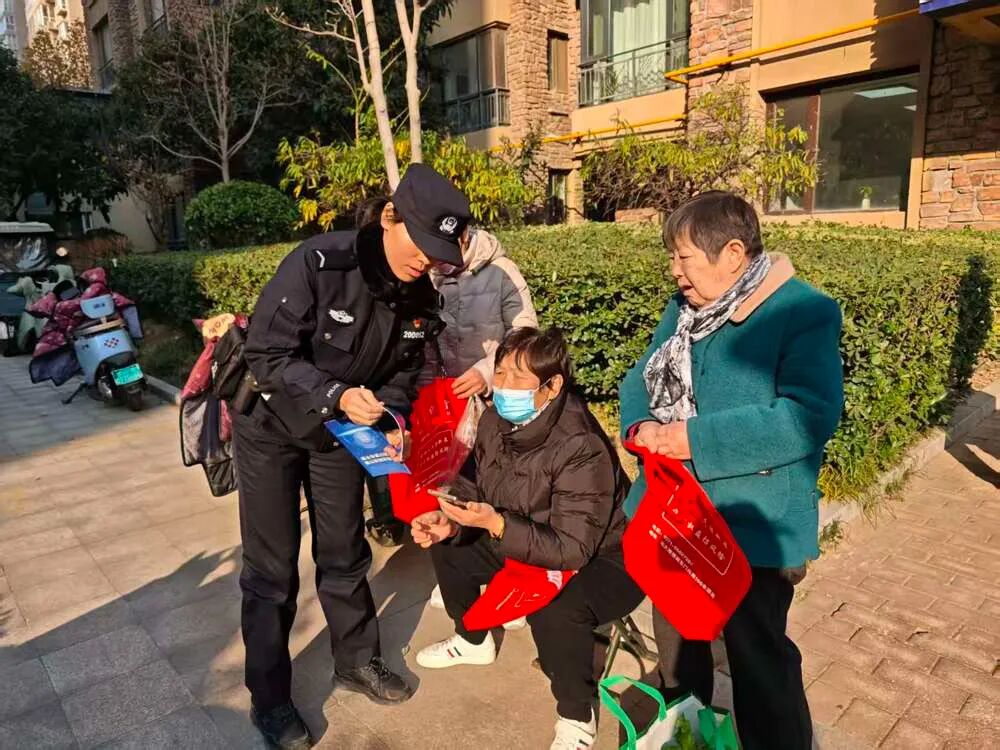 為有效遏制冬季電信網絡詐騙案件多發態勢,切實提升轄區居民防騙識騙能力,筑牢歲末年初人民群眾財產安全防線,朝鳳路派出所緊密結合冬季社會治安特點,組織社區民警深入轄區居民小區,集中開展防范電信網絡詐騙主題反詐宣傳活動。