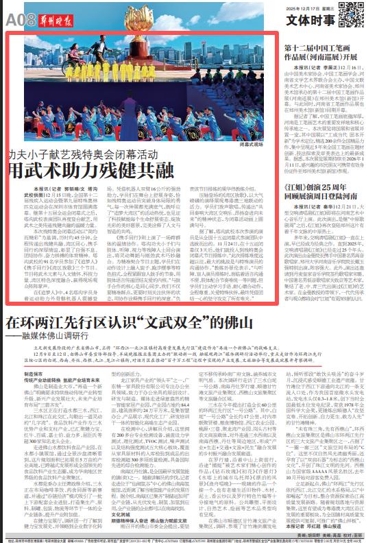12月15日晚,全國第十二屆殘疾人運動會暨第九屆特殊奧林匹克運動會在深圳市體育館圓滿落幕。繼第十五屆全運會閉幕式之后,塔溝武校表演團隊再度登臺獻藝,用武術之美傳遞殘健共融的溫暖力量。