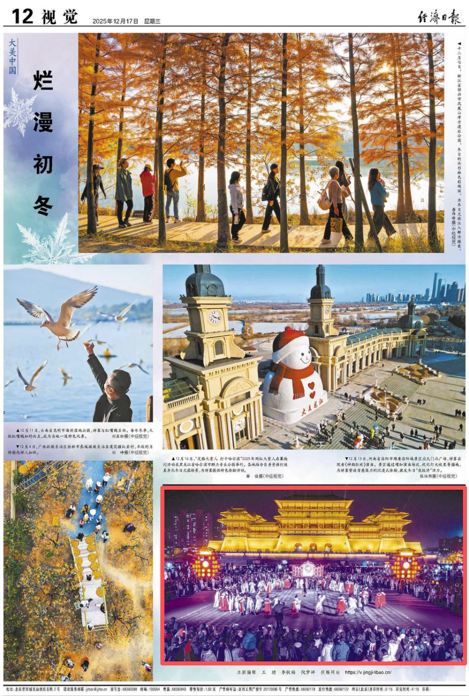 今日出版的《經(jīng)濟日報》刊發(fā)圖片新聞,報道了12月13日,河南省洛陽市隋唐洛陽城景區(qū)應(yīng)天門北廣場,游客在觀看《神都狂歡》演出。景區(qū)通過增加演出場次、優(yōu)化燈光效果等措施,為游客營造有感染力的沉浸式體驗,激發(fā)冬日“夜經(jīng)濟”活力。 查看完整報道>>>