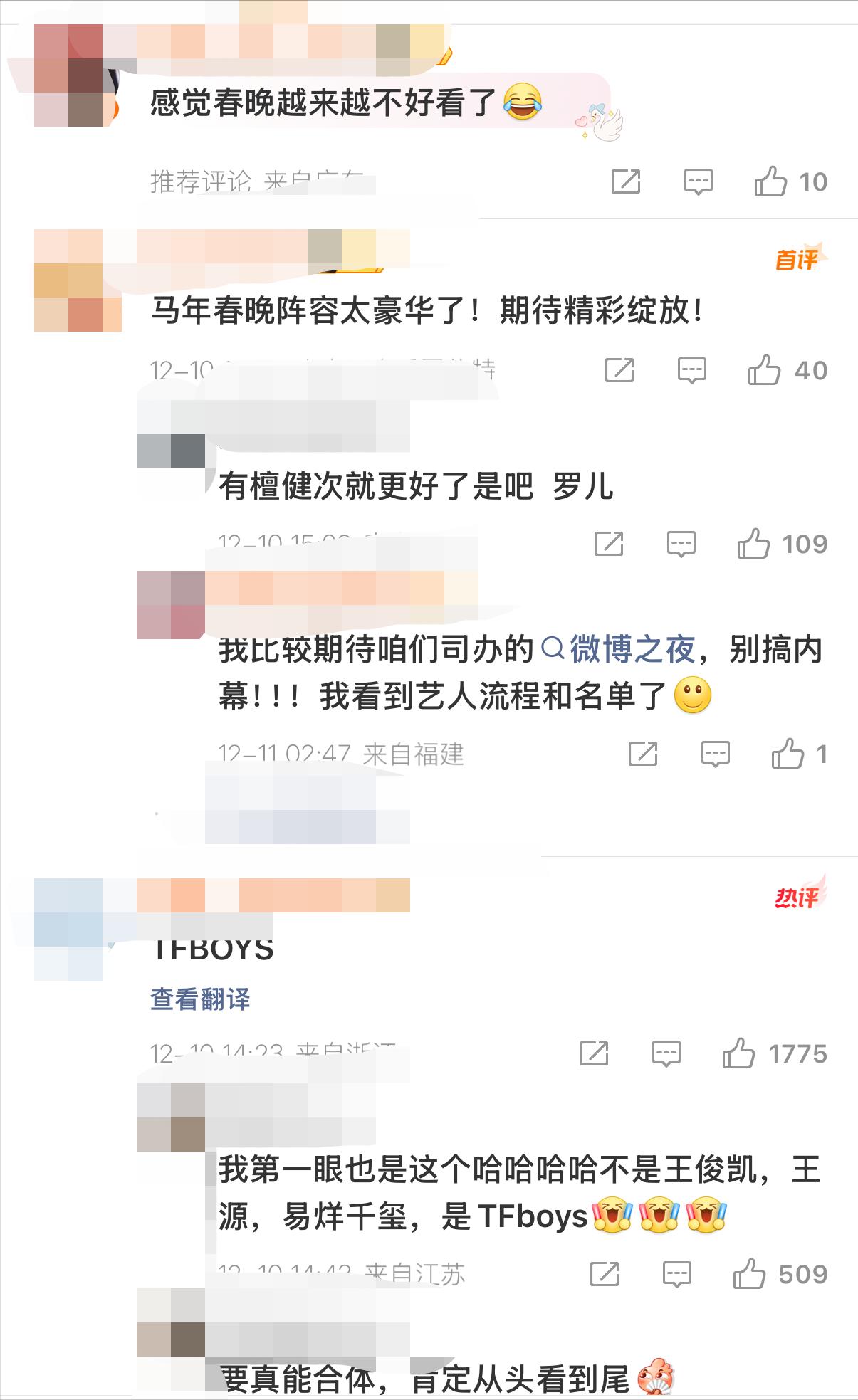 網(wǎng)友們紛紛在評論區(qū)里喊話,強(qiáng)烈呼吁自己的偶像能出現(xiàn)在春晚的節(jié)目單上。