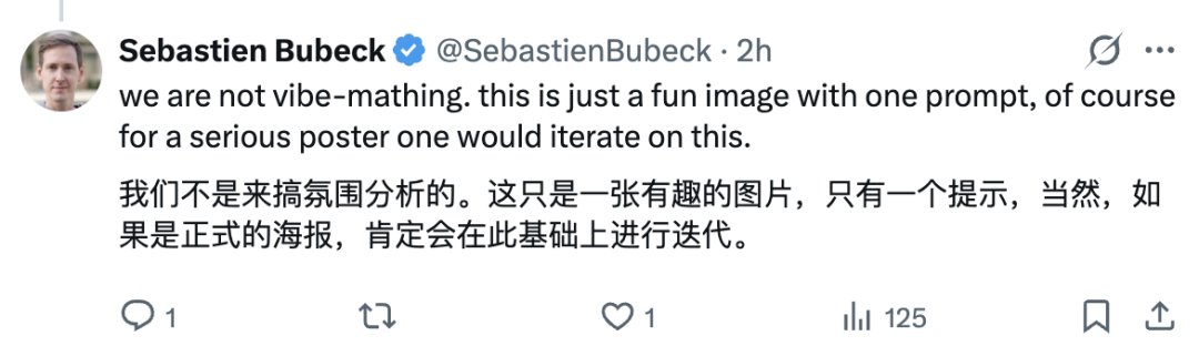 新模型發(fā)布后,曾任微軟AI副總裁、現(xiàn)就職于OpenAI的Sebastien Bubeck也第一時間下場,為GPT-Image-1.5站臺。