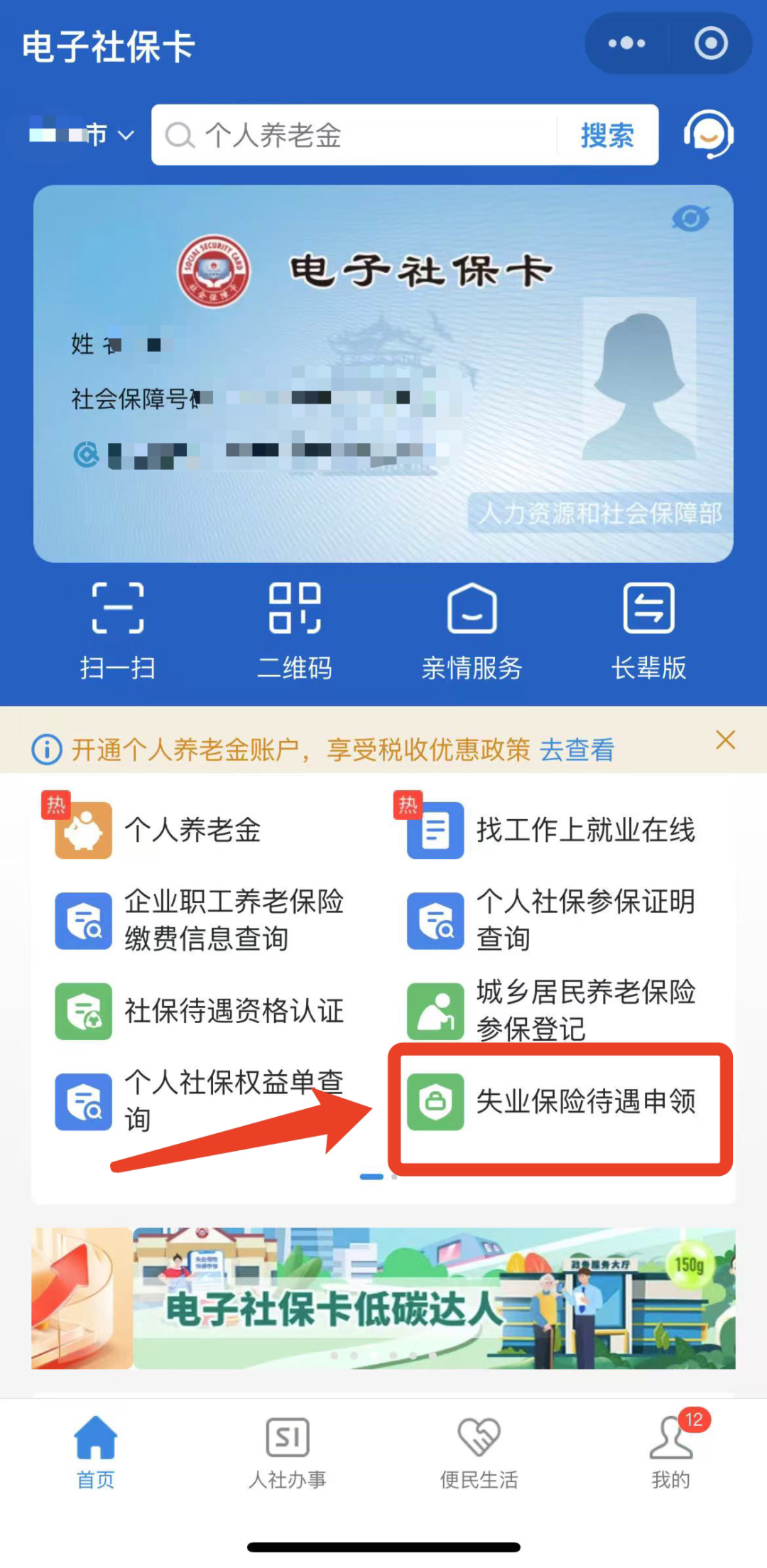 登錄電子社保卡微信小程序,點擊“失業保險待遇申領”,然后按提示填寫、提交相關信息完成申領即可。