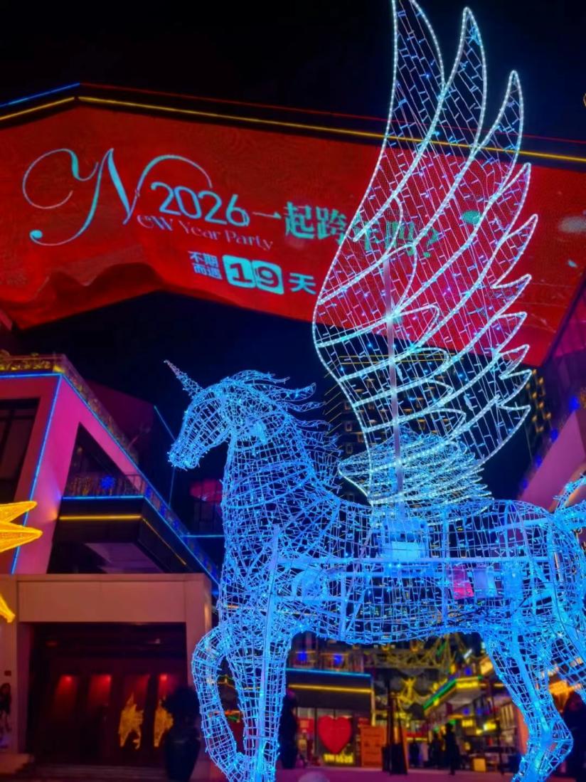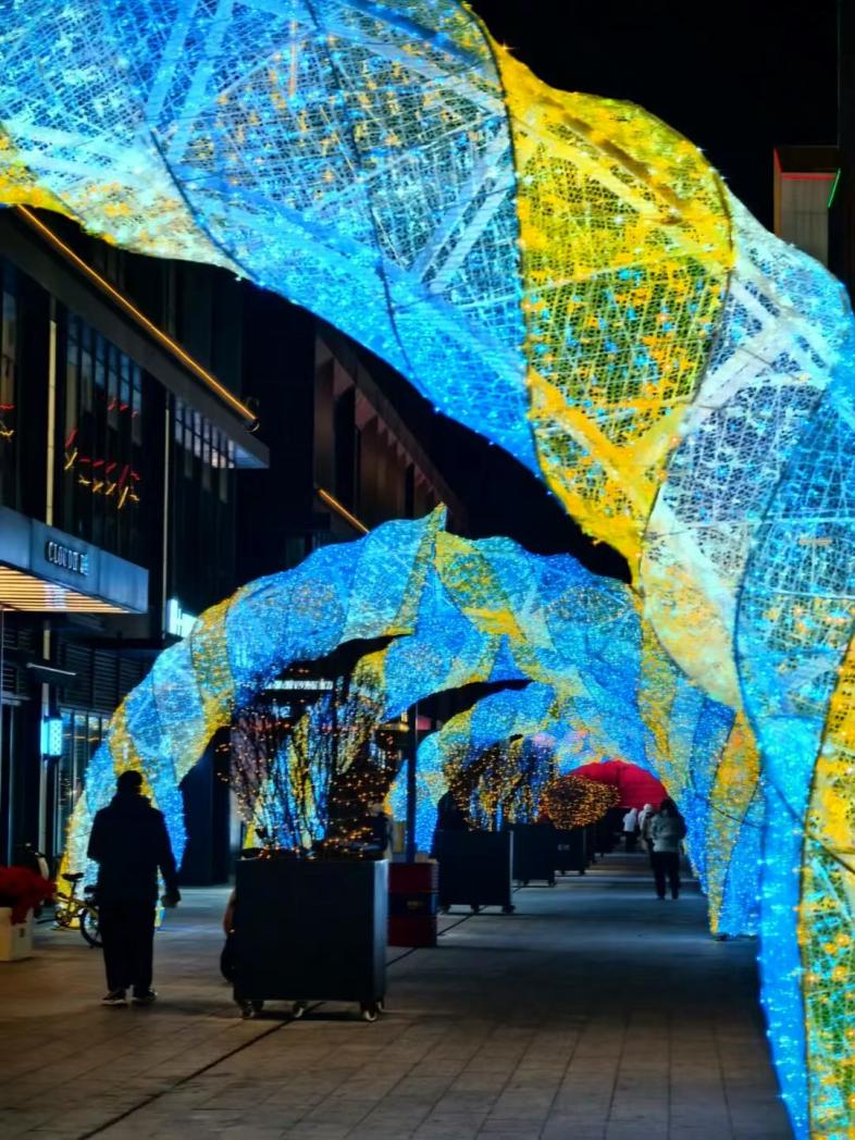 當晚,80萬顆LED燈珠匯聚成8米高的璀璨流光,將夜空裝點成奇幻畫卷。光影瀑布傾瀉而下,歐洲網(wǎng)紅天使燈陣如夢似幻,千米光影堤岸璀璨浩瀚……多組藝術裝置共同構筑出一個沉浸式童話秘境。漫步其中,移步換景,每個角落都充滿驚喜,隨手定格皆是光影大片。