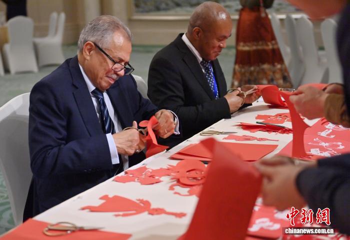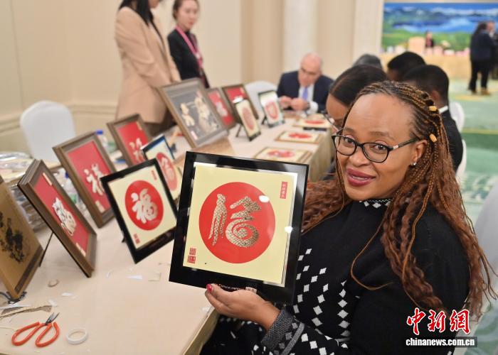 圖為代表團成員體驗長白山滿族剪紙。中新社記者 張瑤 攝