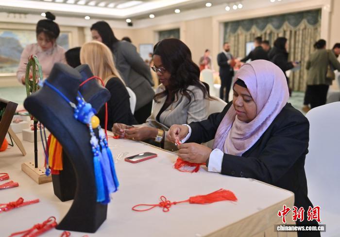 圖為代表團成員體驗繩編。中新社記者 張瑤 攝