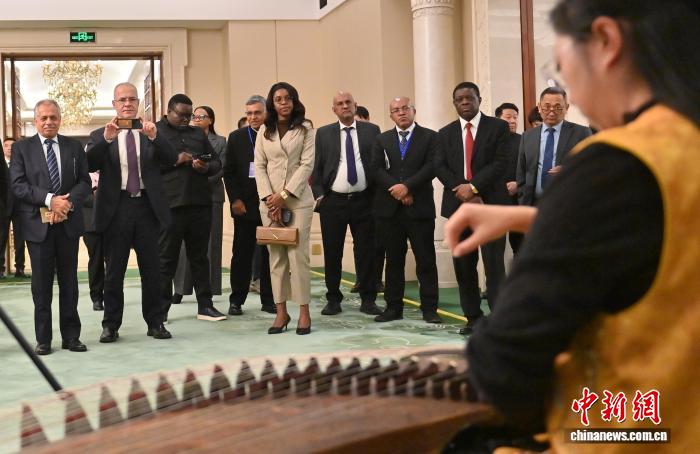 圖為代表團成員觀看趙家傳統(tǒng)古箏技藝。中新社記者 張瑤 攝