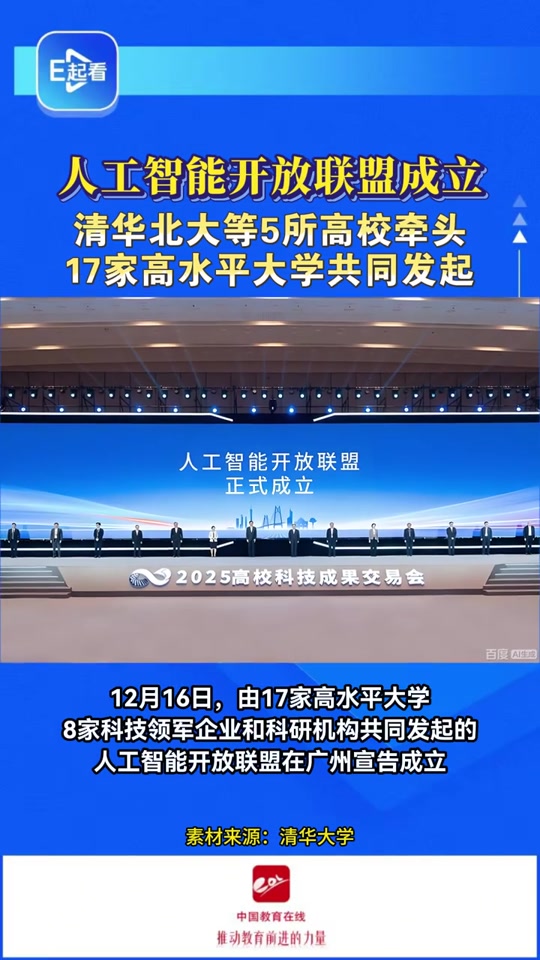 12月16日,由17家高水平大學(xué)、8家科技領(lǐng)軍企業(yè)和科研機(jī)構(gòu)共同發(fā)起的人工智能開(kāi)放聯(lián)盟在廣州舉行的2025高校科技成果交易會(huì)上宣告成立。廣東省委書(shū)記黃坤明,教育部黨組書(shū)記、部長(zhǎng)懷進(jìn)鵬,廣東省委副書(shū)記、省長(zhǎng)孟凡利和來(lái)自全國(guó)600余所高校的參會(huì)代表共同見(jiàn)證聯(lián)盟正式成立。