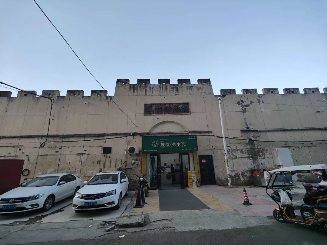 洋帆市場別具一格的城堡造型,兩層樓體,頂部四周環繞著城垛,東西兩座大門,從遠處看仿佛一座微縮的城池。