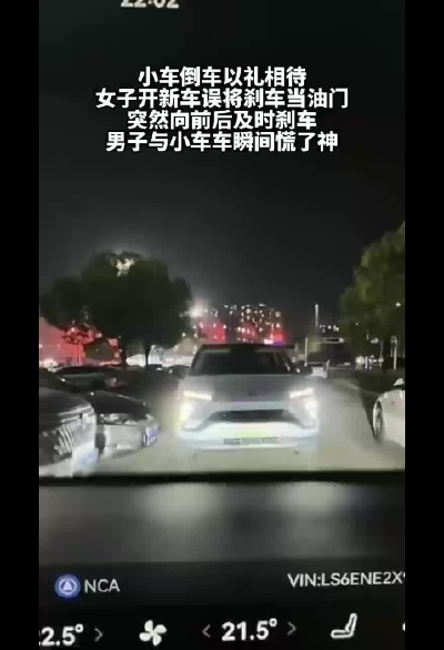 新手女生開車嚇壞男子和對向來車