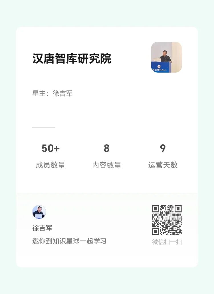 各位漢唐讀者,漢唐智庫開設了自己的知識星球:漢唐研究院!創始人徐吉軍親自運營,每周最少更新5篇深度文章!期待鐵粉們加入!