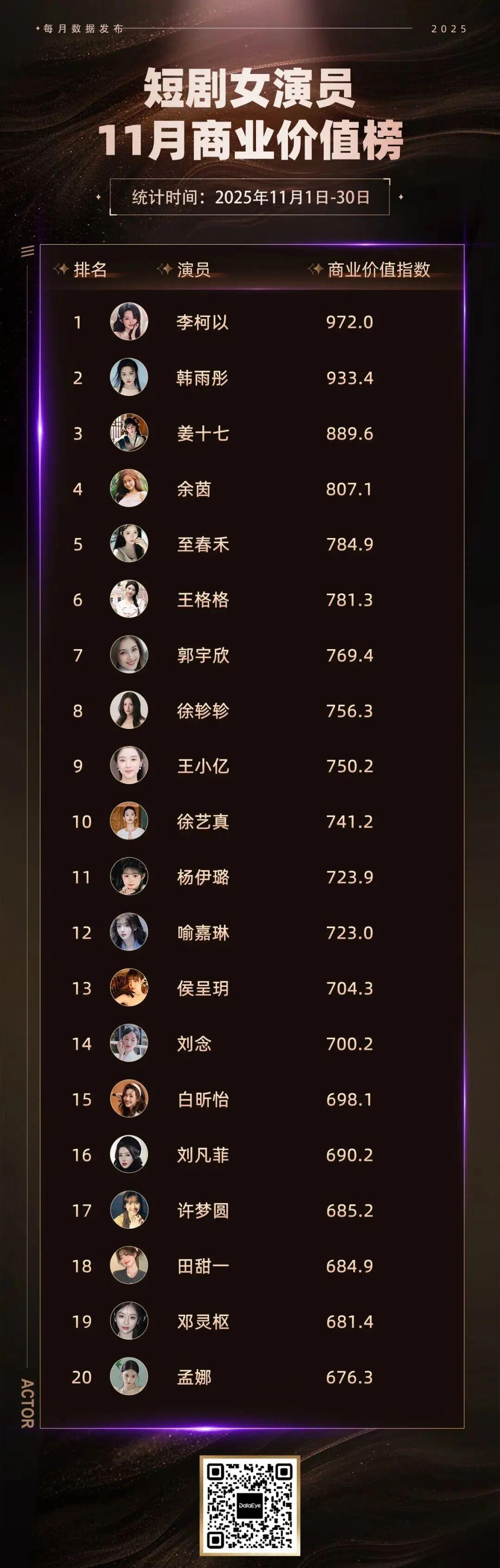 那么問題來了,在熱劇、CP、分賬、代言全面開花的激烈競爭下,哪些短劇演員的商業(yè)價值又“遙遙領先”了?一起來看!