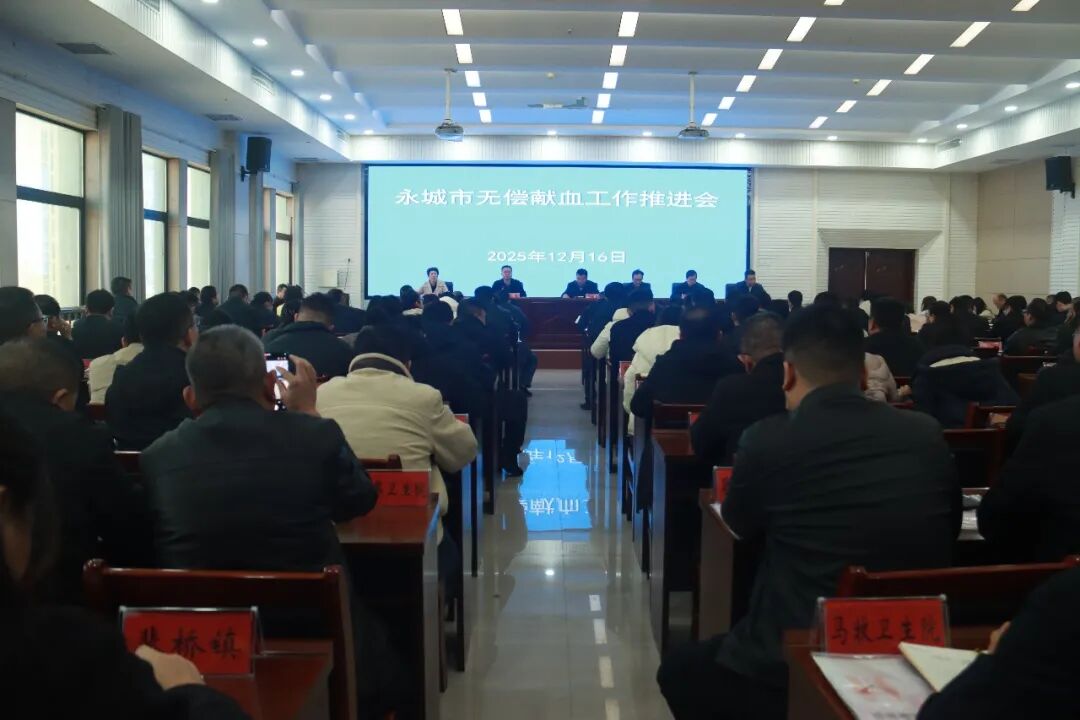 12月16日上午,永城市召開無償獻血工作推進會,全面部署當前及下一階段無償獻血工作,動員全市上下共同守護臨床用血安全、保障人民群眾生命健康。副市長蔣靖山出席會議并講話,全市各機關企事業單位、鄉鎮(街道)及醫療機構代表共計160余人參會。