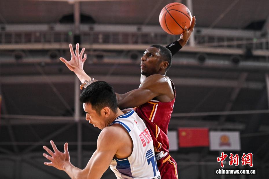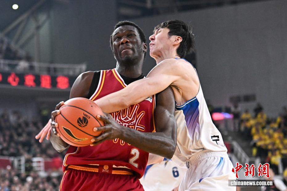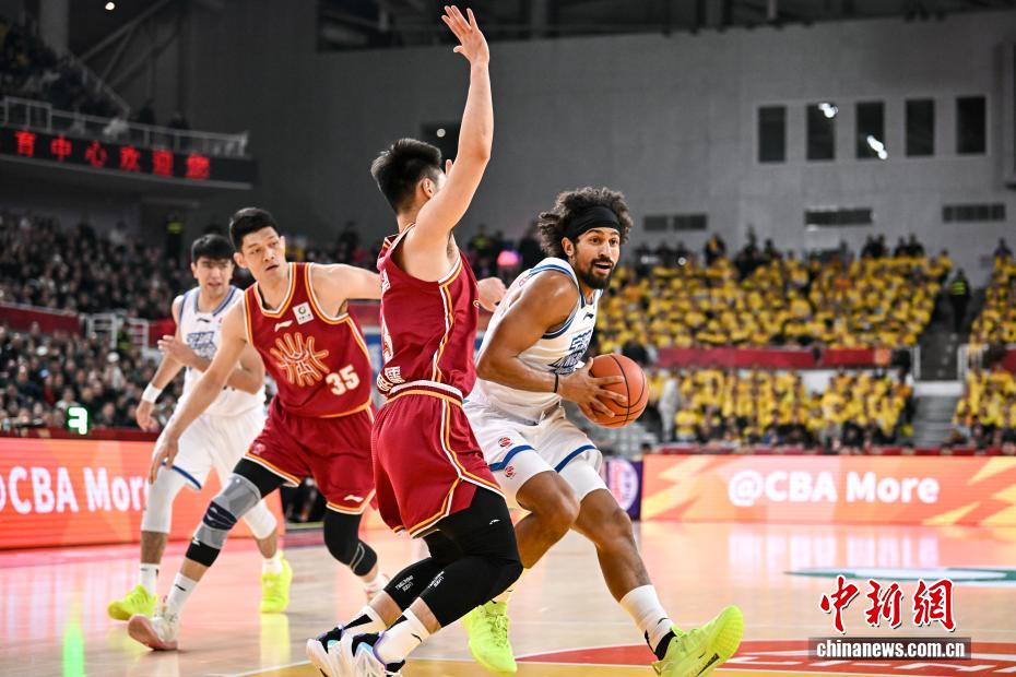 12月16日,山西隊球員迪亞洛(紅)在比賽中帶球突破。當日,在太原進行的2025-2026賽季中國男子籃球職業聯賽(CBA)常規賽第2輪比賽中,山西汾酒隊主場以95比87戰勝寧波町渥隊。