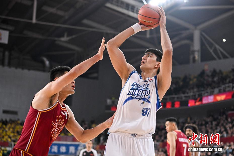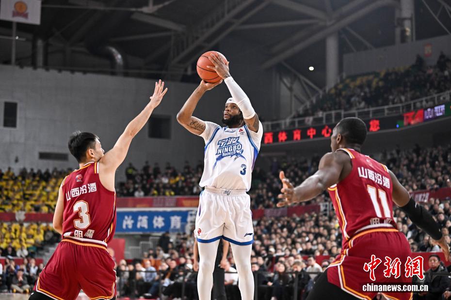 12月16日,寧波隊球員魯吐布拉(白)在比賽中投籃。當日,在太原進行的2025-2026賽季中國男子籃球職業聯賽(CBA)常規賽第2輪比賽中,山西汾酒隊主場以95比87戰勝寧波町渥隊。