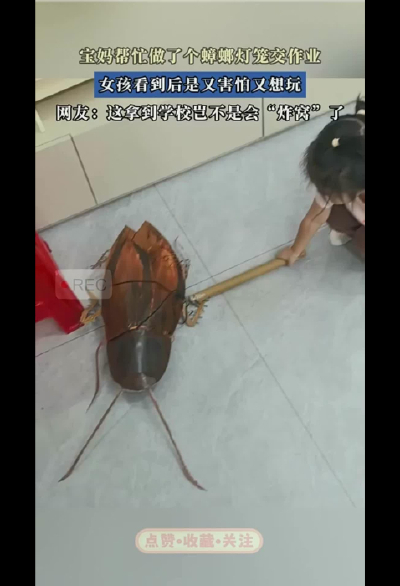 寶媽幫忙做了個蟑螂燈籠交作業(yè),女孩看到后是又害怕又想玩