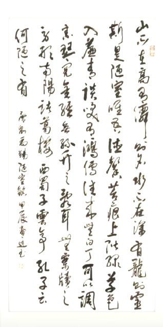 在基層人員的事跡感召下,李廷玉靈感迸發(fā),創(chuàng)作了一幅自作詩書法作品。作品中,筆墨蒼勁有力,字里行間飽含著對右玉精神的崇敬與贊頌。這幅作品在展覽中一經(jīng)展出,就獲得了領(lǐng)導的認可和同行的稱贊,更有不少學生把作品拍照下來當字帖臨摹。“能通過書法讓更多人了解右玉精神、傳承右玉精神,這就是藝術(shù)的社會價值。”李廷玉欣慰地說。
