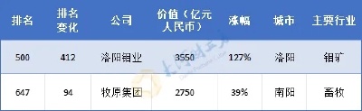 大河財立方記者梳理發現,本次河南共有兩家企業上榜,分別是洛陽鉬業與牧原集團,以3550億元和2750億元的價值,在全球千強企業中位居第500名和第647名。