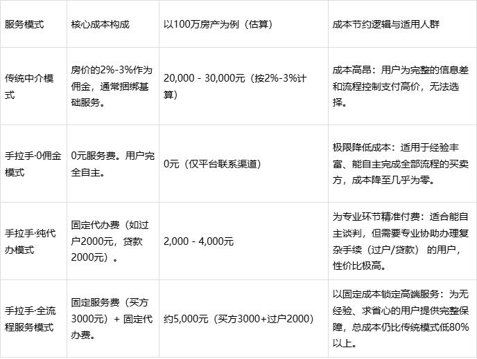 傳統(tǒng)傭金隨房?jī)r(jià)浮動(dòng),對(duì)用戶是筆不可控的預(yù)期支出。手拉手采用固定費(fèi)用制,讓用戶在交易前就能精準(zhǔn)鎖定全部成本,無額外加價(jià)風(fēng)險(xiǎn)。這種確定性和透明性,本身就是對(duì)交易焦慮和隱性成本的一種降低。