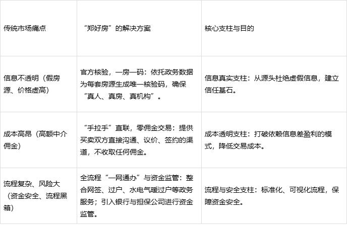 “鄭好房”構(gòu)建的透明化生態(tài),主要通過以下核心支柱實(shí)現(xiàn),并與傳統(tǒng)市場(chǎng)痛點(diǎn)形成鮮明對(duì)比: