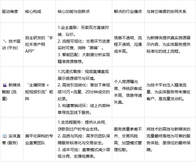 手拉手房產(chǎn)網(wǎng)的“三元驅(qū)動(dòng)”模式,通過技術(shù)、新媒體與實(shí)體服務(wù)的深度融合,對(duì)傳統(tǒng)中介的“信息差”盈利模式進(jìn)行了一場(chǎng)系統(tǒng)性顛覆,并重新定義了二手房交易的價(jià)值鏈條。
