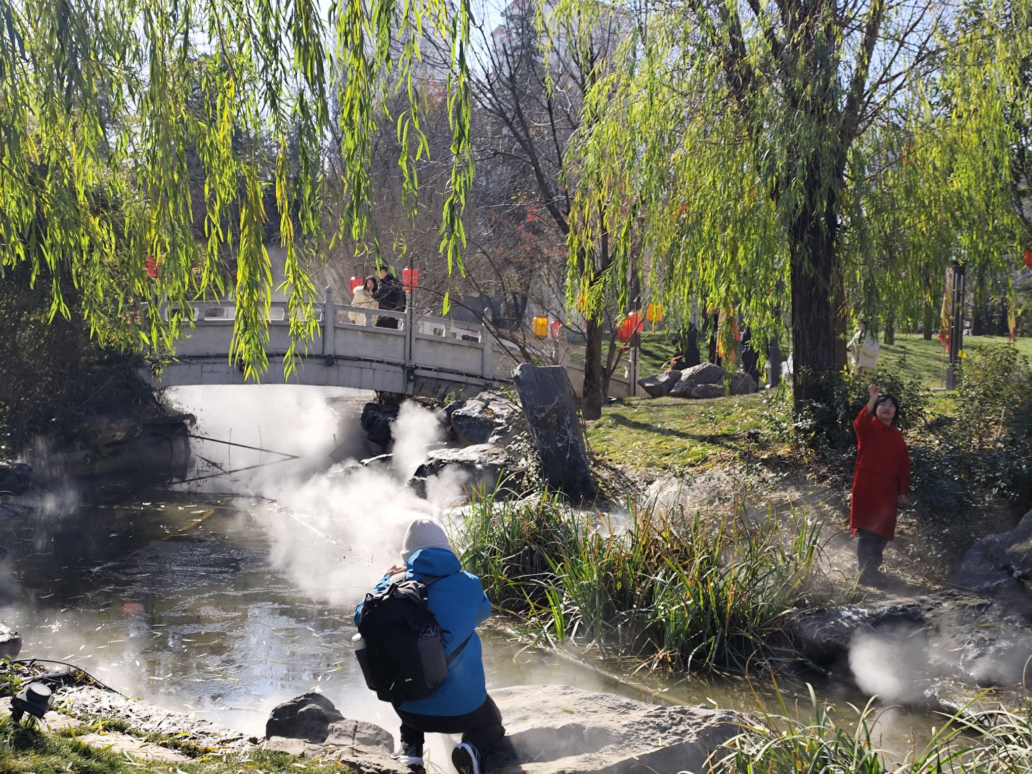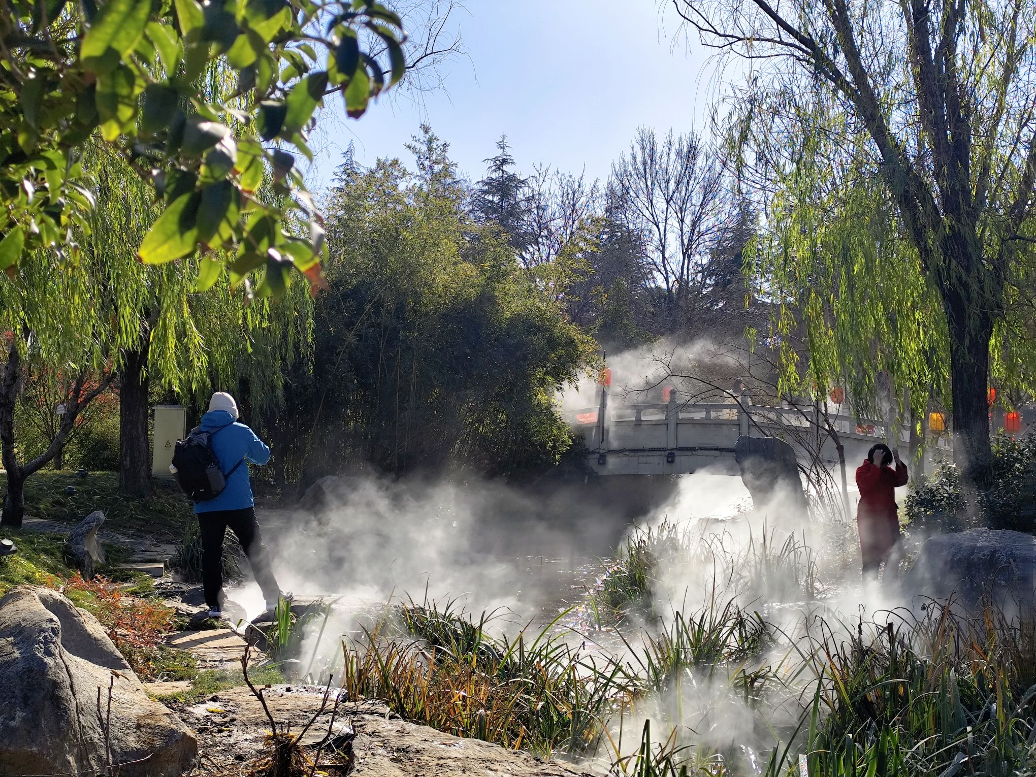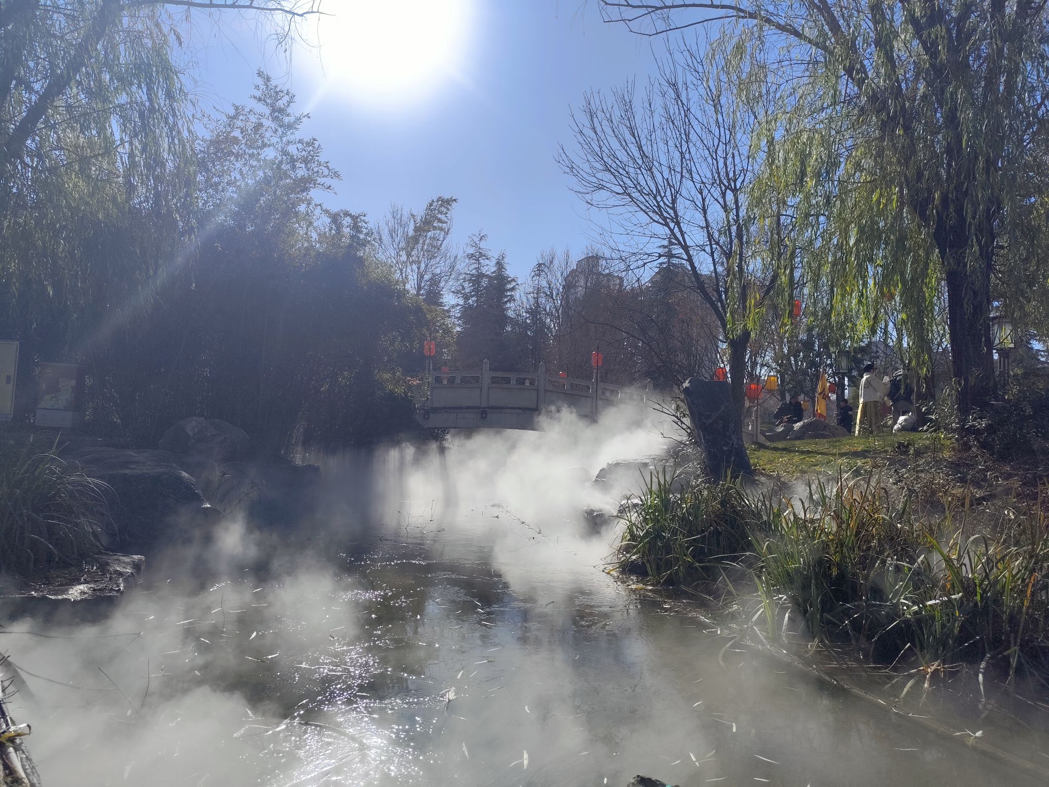 踏入九洲城一座石橋的剎那,水汽便溫柔地拂了上來。像一條看不見的、涼滑的綢子,帶著池底青苔與岸邊濕土的氣息,溫柔又不由分說地拂過面頰。隨即,一個朦朧的、跳動著無數細小光斑的世界,便在氤氳的白霧后,緩緩顯出了輪廓。