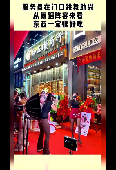 服務員在門口跳舞助興,從舞蹈陣容來看,東西一定很好吃!