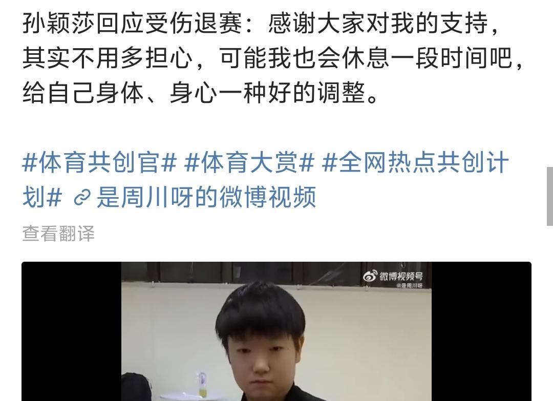 很多球迷表示孫穎莎連上車都需要別人攙扶,傷病比較嚴重。站在粉絲的角度,當然是希望自己的偶像養好傷,再參加各類比賽。隨著年齡的增長,孫穎莎也面臨著傷病的困擾。不過,這次總決賽的傷病并沒有對孫穎莎造成太多影響。孫穎莎賽后在接受采訪時表示,接下來將休息一段時間,可能她無法參加月底舉行的乒超聯賽了。