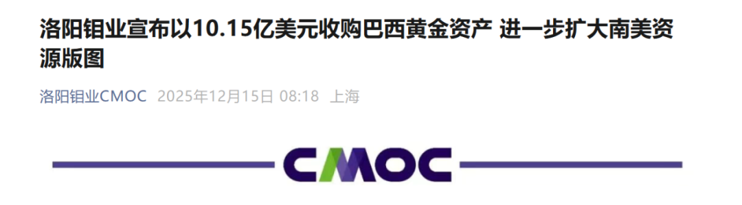 12月15日,洛陽鉬業(yè)(603993.SH)發(fā)布關(guān)于收購金礦項(xiàng)目的公告:公司將以總計(jì)10.15億美元(約人民幣71.53億元)的對(duì)價(jià)收購加拿大礦業(yè)企業(yè)Equinox Gold?Corp.(以下簡稱EQX)位于巴西三個(gè)金礦資產(chǎn)(其中一筆包括兩座金礦)的100%權(quán)益。