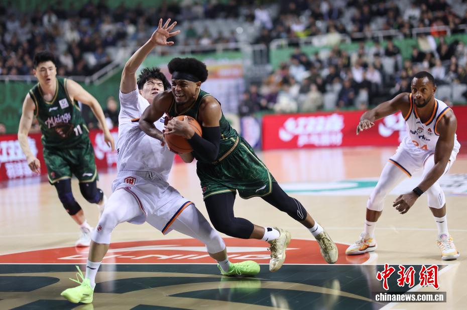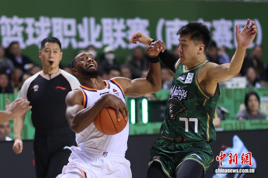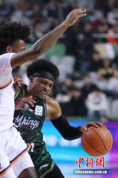 12月16日晚,在江蘇南京舉行的2025-2026賽季中國男子籃球職業聯賽(CBA)常規賽比賽中,南京天之藍隊(綠衣)主場105比97戰勝上海久事隊(白衣)。圖為南京天之藍隊球員拉維特在比賽中進攻受阻。