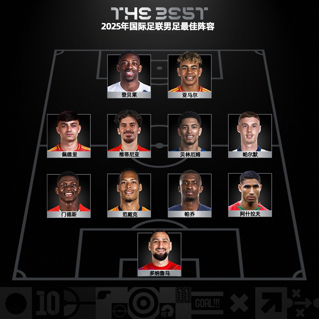 在登貝萊之后,西班牙新星亞馬爾與法國球星姆巴佩分列二、三位。該榜單由各國家隊主教練、隊長與媒體代表投票產生,除上述三人外,阿什拉夫、拉菲尼亞、薩拉赫、維蒂尼亞、凱恩、努諾·門德斯、佩德里與帕爾默也進入了候選名單。