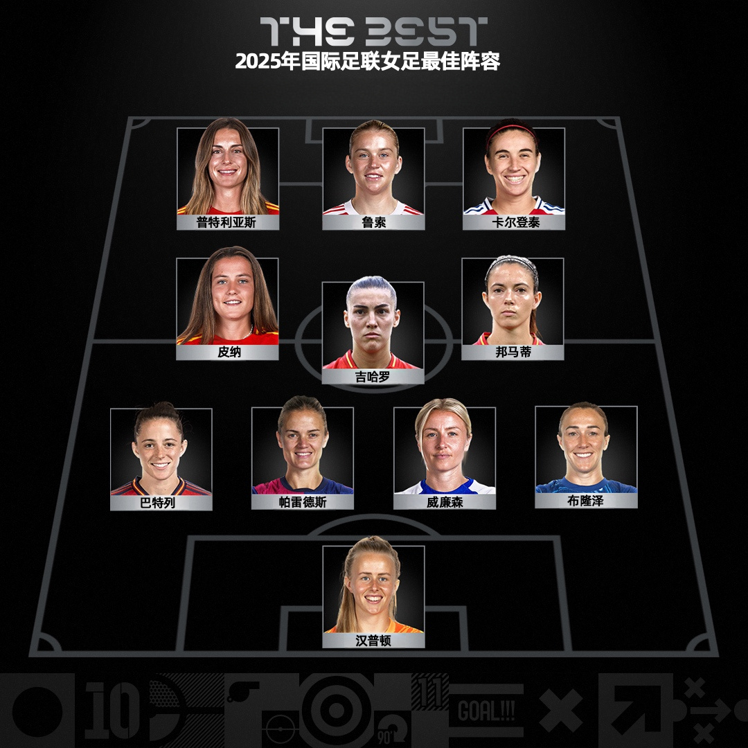 效力于西班牙巴塞羅那俱樂部的邦馬蒂獲得女足金球獎。作為國家隊與俱樂部的雙料核心,邦馬蒂在過去一年中延續著自己的出色狀態,她幫助巴塞羅那隊獲得西甲冠軍與歐冠亞軍,并率領西班牙隊闖入歐洲杯決賽。繼實現女足金球獎三連莊后,如今邦馬蒂又連續三年加冕世界足球小姐榮譽。