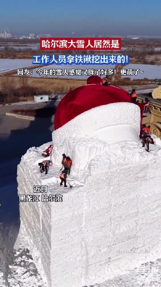 哈爾濱大雪人居然是工作人員拿鐵鍬挖出來的!網(wǎng)友:今年的雪人感覺又胖了好多!更萌了~#哈爾濱