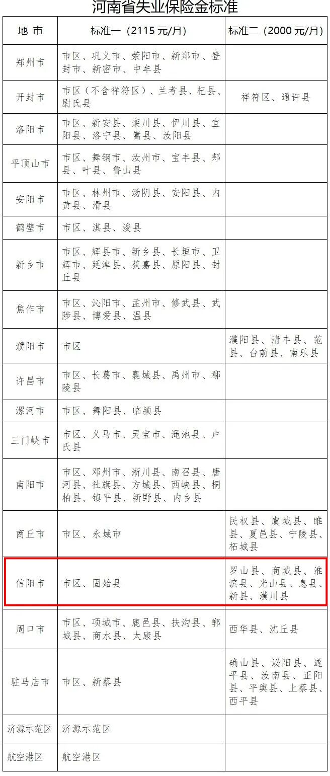 根據(jù)通知,失業(yè)保險金基本標準按照全省一類行政區(qū)域月最低工資標準的百分之九十確定,調(diào)整為2115元/月。其中,基本標準高于最低工資標準的三類行政區(qū)域,失業(yè)保險金標準按照不高于所在地最低工資標準確定,調(diào)整為2000元/月。納入省直統(tǒng)籌的失業(yè)保險參保單位,失業(yè)保險金標準參照鄭州市市區(qū)標準執(zhí)行。調(diào)整標準所需資金由失業(yè)保險基金列支。
