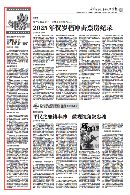 12月17日,《中國新聞出版廣電報》電影專欄刊發報道《全國報業首部XR電影獲“龍標”——讓甲骨文字從“可觀”到“可感”》。通過“報業轉型新賽道”“全流程沉浸式體驗”“打破觀影‘第四堵墻’”三個方面,全面介紹《了不起的甲骨文·王子的榮耀》這部標志著傳統媒體跨界電影產業實現關鍵突破的XR沉浸式電影。