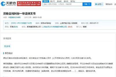 瀟湘晨報記者查詢天眼查天眼風險信息發現,近期,法院公開王某與上海絲芭文化傳媒集團有限公司勞務合同糾紛裁判文書。原告王某訴稱于2024年6月15日至6月18日受被告聘請擔任其公司藝人鞠婧祎的發型師,為其參加的活動做發型。工作結束后,被告遲遲不向原告支付勞務費,多次協商無果,溝通期間態度惡劣(拉黑失聯,去公司討要說法被趕出來),故起訴。