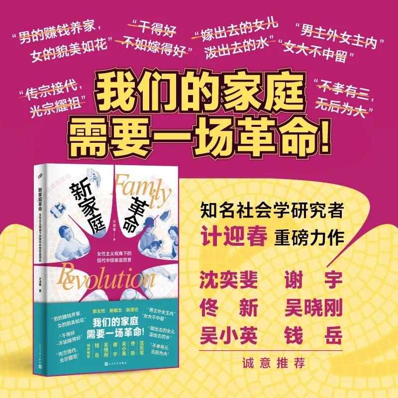 今年年底,計迎春教授將她多年社會學理論研究和田野調查思考成果結集成書,最終凝結成這本聚焦本土家庭變遷與性別議題的重磅著作《新家庭革命:女性主義視角下的現代中國家庭圖景》。
