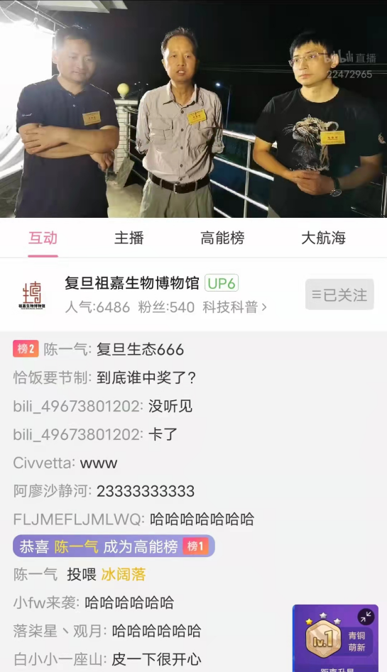 “Skylab直播”則開創了另一種科普形式。學生做主播,帶觀眾云參觀博物館、走進天目山野外課堂、探訪國家重點實驗室。“那次在天目山直播,學生們下到溪水邊找天目臭蛙,晚上燈誘昆蟲,看著獨角仙爬到老師肩膀上……評論區都炸了,在線6000多人,都是真正熱愛大自然的孩子。”吳燕華回憶。