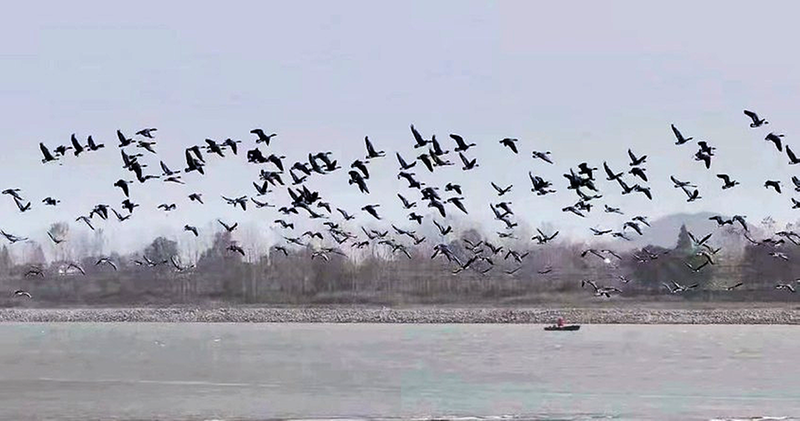 日前,筆者跟隨長江華陽航道處工作人員開展生態巡航,登上有著“長江食堂”之稱的東流水道天心洲老虎灘生態固灘區,沙洲上翻飛的“鳥浪”與江中“冒尖”的江豚,繪成一幅長江生態蝶變帶來的壯美圖景。