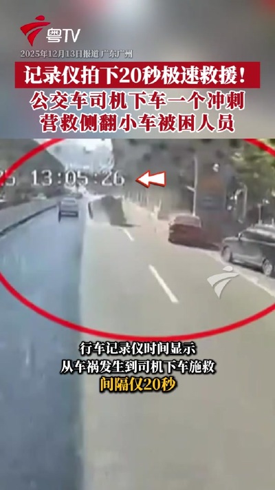 記錄儀拍下20秒極速救援,小車側(cè)翻公交車司機沖刺營救