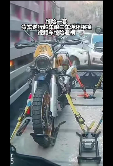 驚險一幕 貨車逆行超車釀三車連環(huán)相撞 視頻車驚險避禍