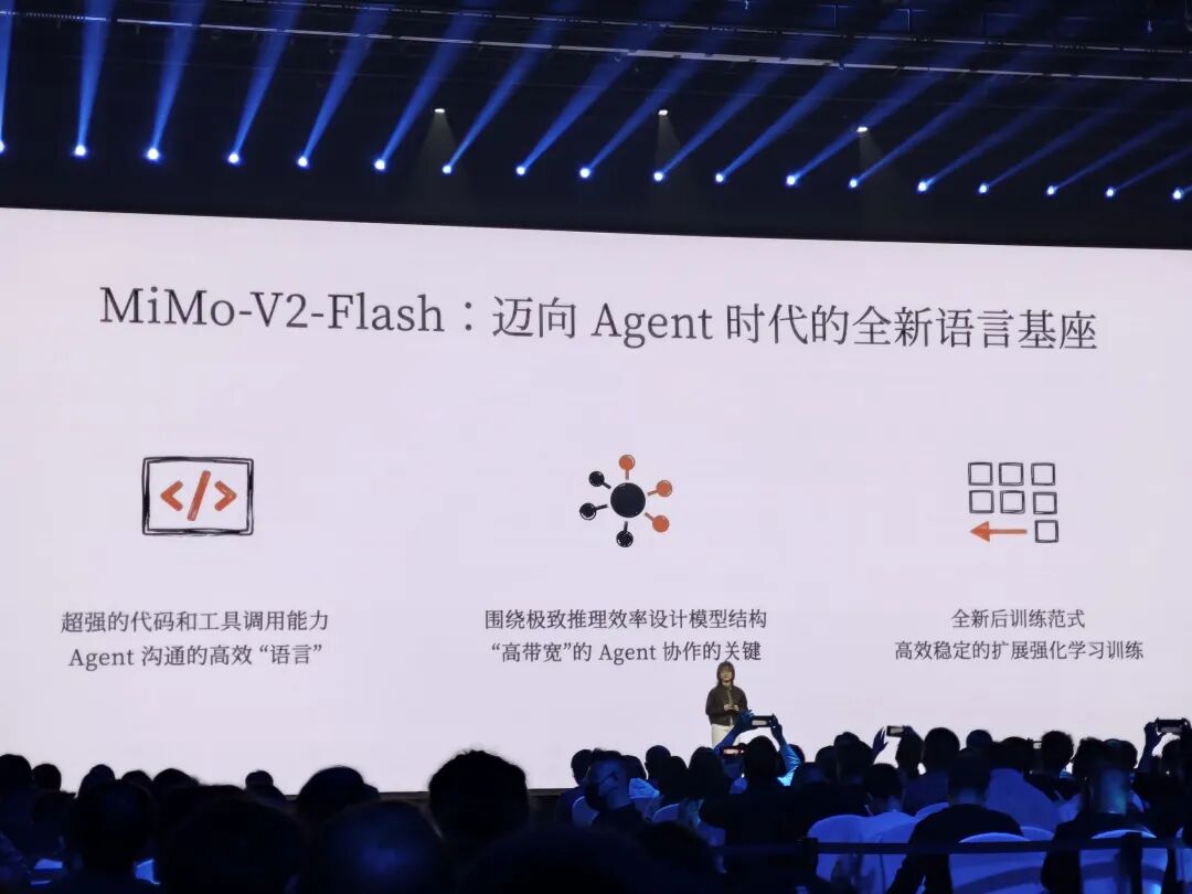 臺(tái)上的羅福莉略顯緊張,雙手一直緊握翻頁(yè)器,但這位四川姑娘用帶有一點(diǎn)“川普”的口音堅(jiān)定地說(shuō):“MiMo-V2-Flash是邁向Agent時(shí)代的全新語(yǔ)言基座?!?/p>