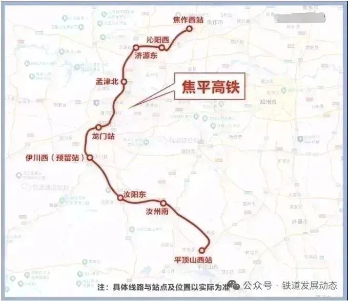 根據《關于新建焦作至平頂山鐵路初步設計的批復》,焦平高鐵采用跨線長途列車與城際列車共線運行的運輸組織模式,設計開行350公里/小時速度等級動車組,線路包含洛陽樞紐及焦作、平頂山等地相關工程。